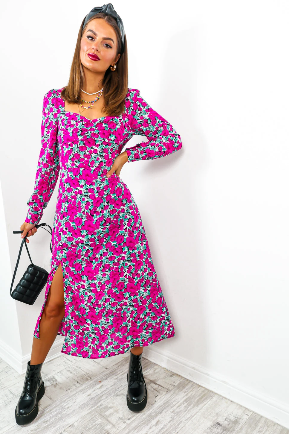 It’s always a good time for florals – so live life in full bloom, Doll! In magenta and green, this botanical number steals the show. With a milkmaid style neckline and a leg split to add a little sass, this is the perfect midi dress to see you through brunch! Add a matching magenta lip and an oversized leather jacket for a trendy cool girl look that will have them asking for the details.