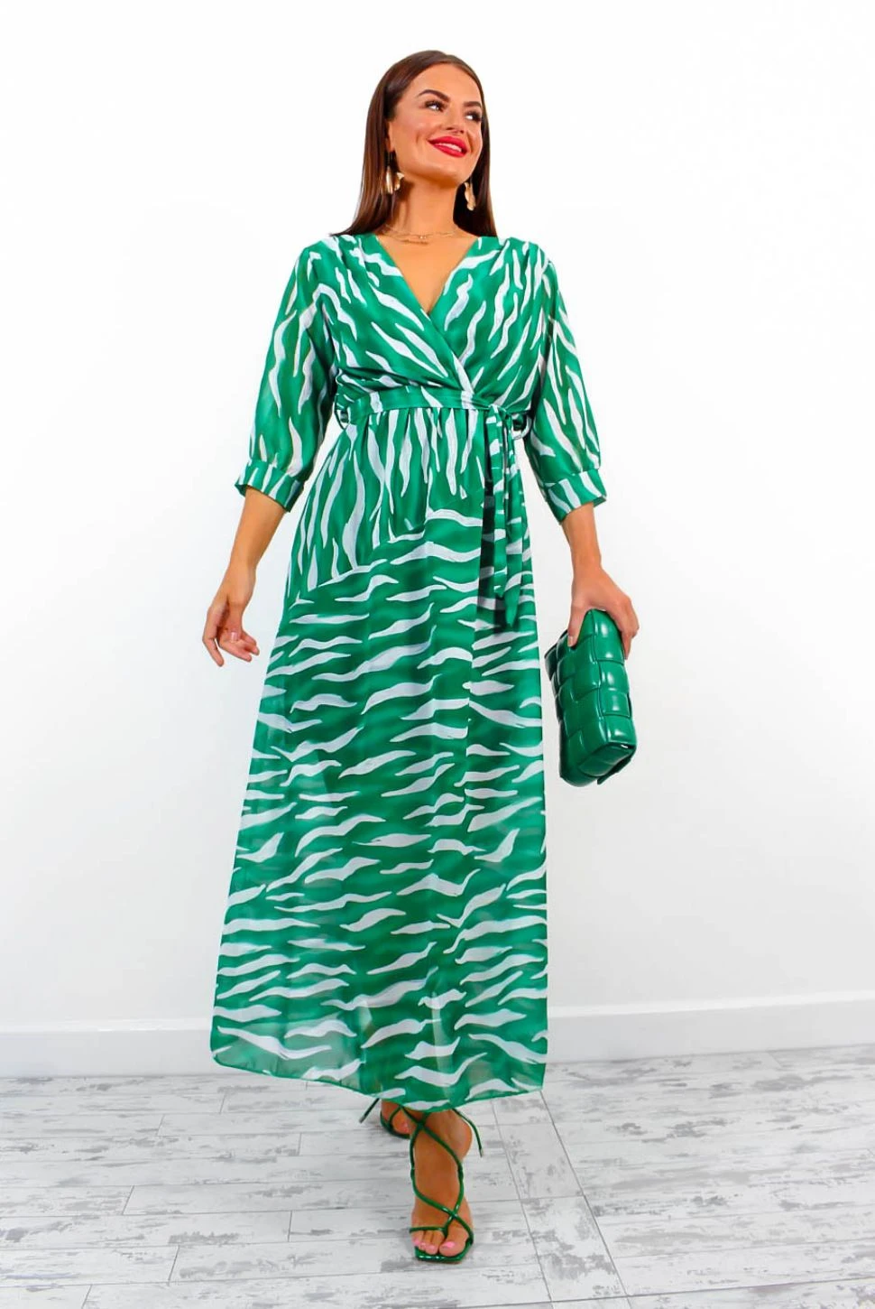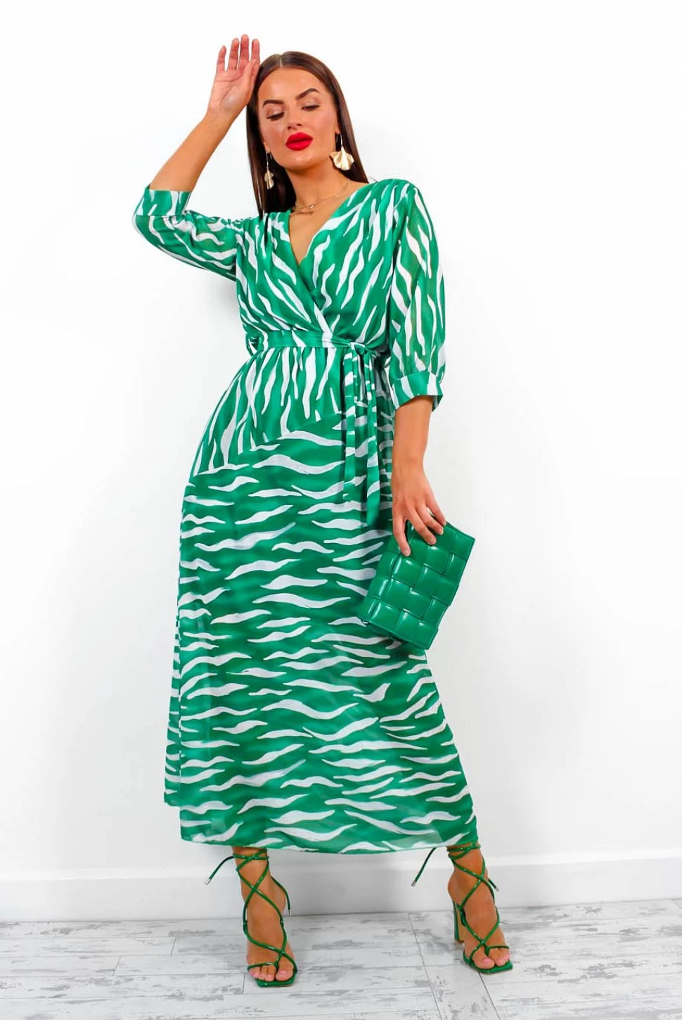 You were born to stand out. This stunning midi dress features a green zebra print, long cuffed sleeves, cross-over neckline, and elasticated waist. The perfect special occasion fit for those day-to-night do’s, just pair with pink or green heels!
