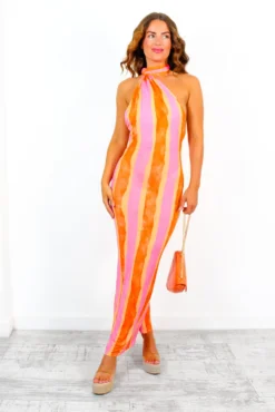 Every Single Time – Black Off White Stripe Bandeau Midi Dress