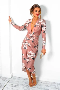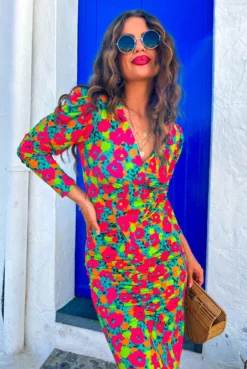 Shes A Diamond – Green Multi Floral Diamond Ruched Midi Dress