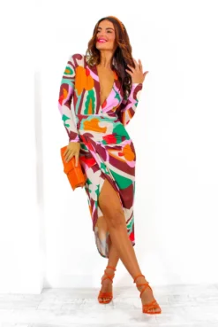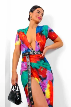 Simple And Elegant – Multi Abstract Floral Bodycon Midi Dress