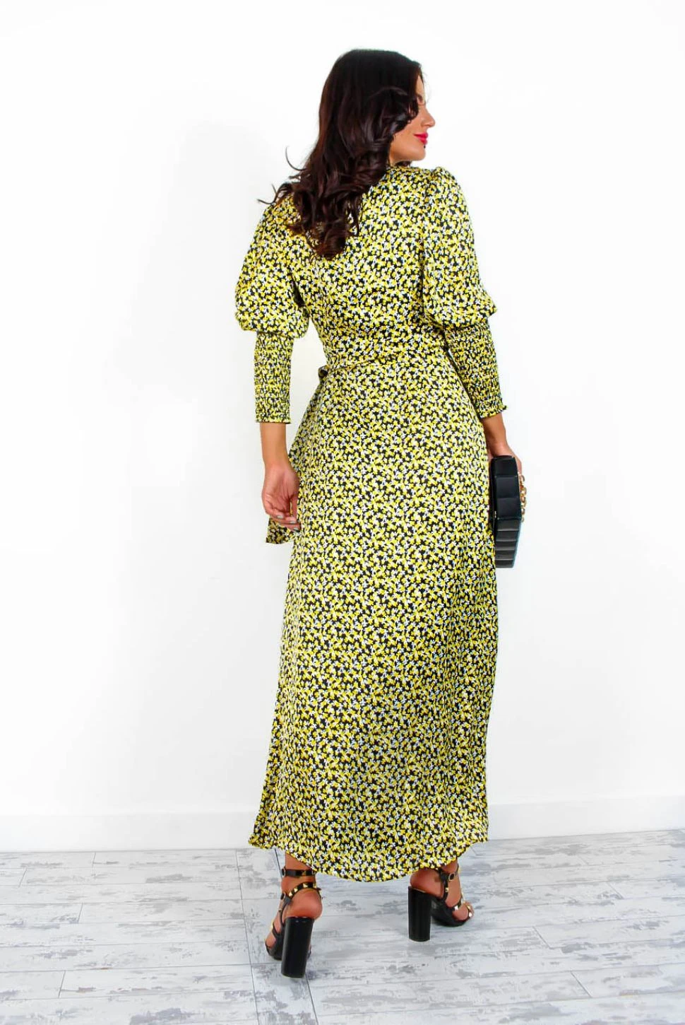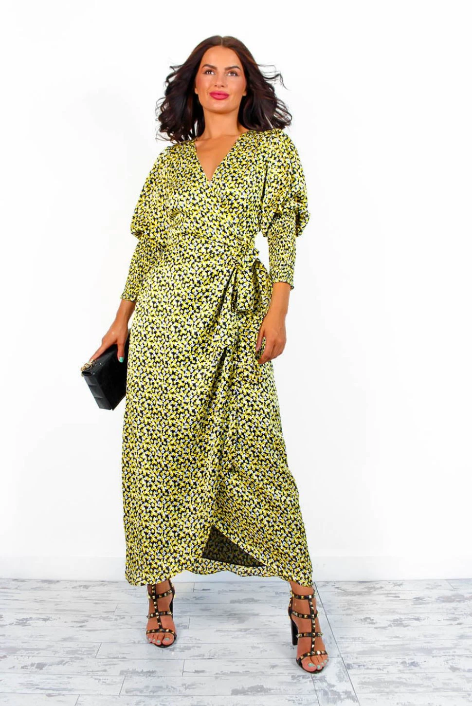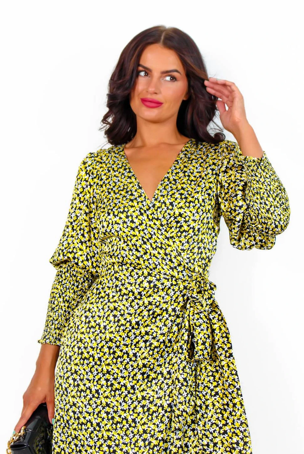 Just dropped: this print – and it’s driving us wild! In one of our favourite styles, this midi features a black and yellow flower print throughout, long sleeves with shirred detailing, and a wrap fastening that can be worn multiple ways. We love this dress styled plunged. Let the dress do the talking and be ready to steal the show!Â