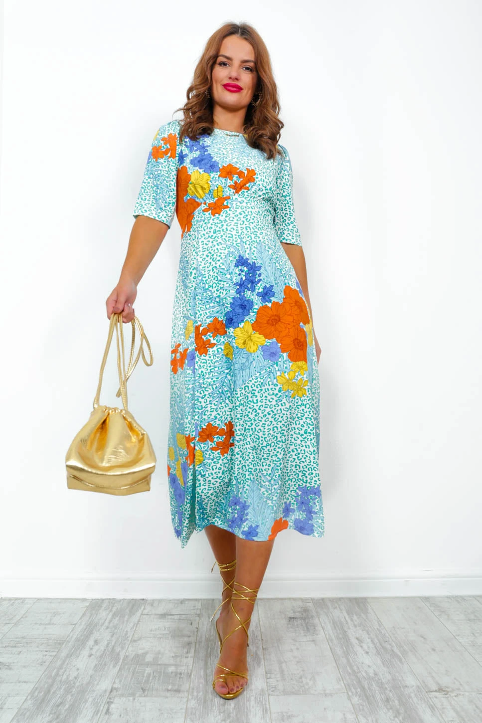 Spring never looked so good on you! In midi length, this bright number features a 3/4 sleeve, empire line fit, contrasting green and lilac animal print and a leg split that we can’t get enough of! Team with black chunky boots and a leather jacket for a casual, edgy look.