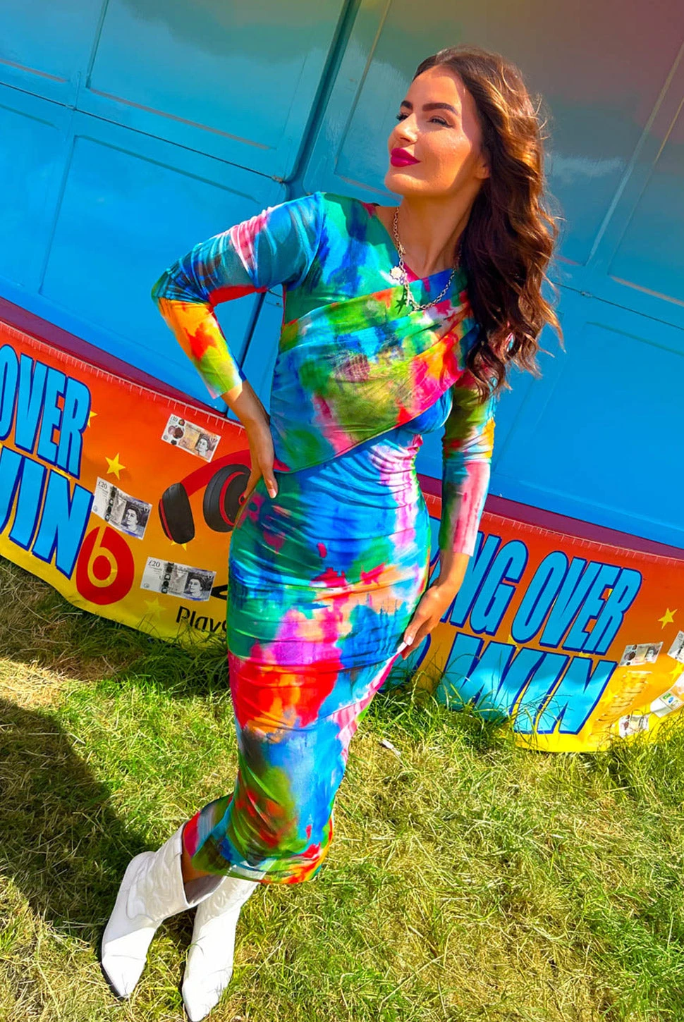 Hey, Doll! Missed me? It’s time to embrace your inner fashionista and make heads turn in this captivating ensemble. This vibrant midi dress features a flattering ruched mesh overlay, draping detail, and long mesh sleeves, making it a true fashion must-have. With its bodycon fit, this dress hugs you like a dream, accentuating your silhouette whilst the multicolour abstract print ensures you’ll be the centre of attention ALWAYS!