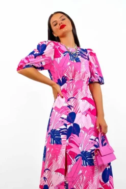 Wanderin Free – Lilac Yellow Abstract One Shoulder Midi Dress