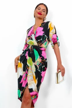 Cocktail OClock – Black Pink Floral Midi Dress