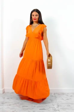 Frantic Romantic – Orange Tiered Maxi Dress