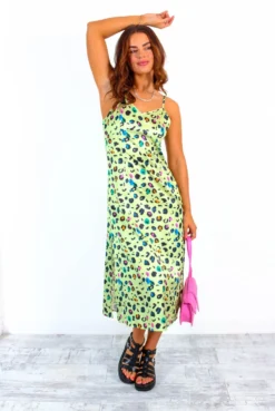 Good Without You – Yellow Multi Leopard Satin Cami Midi Dress