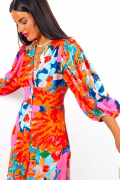 Sleeve You Behind – Pink Orange Floral Midi Dress