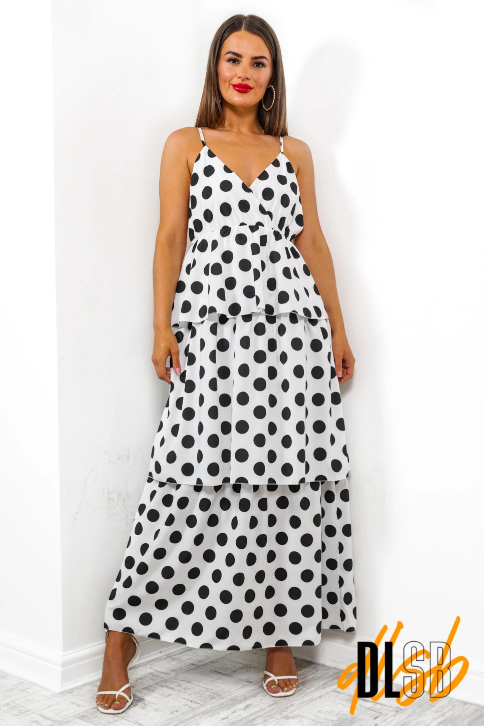 Nothing says timeless like polka dots! Featuring a wrap style neckline and floaty layered panels, this polka dot maxi dress is sure to turn heads whatever your plans. Style with red heels and a matching clutch to add Parisian vibes and look uber chic this season.